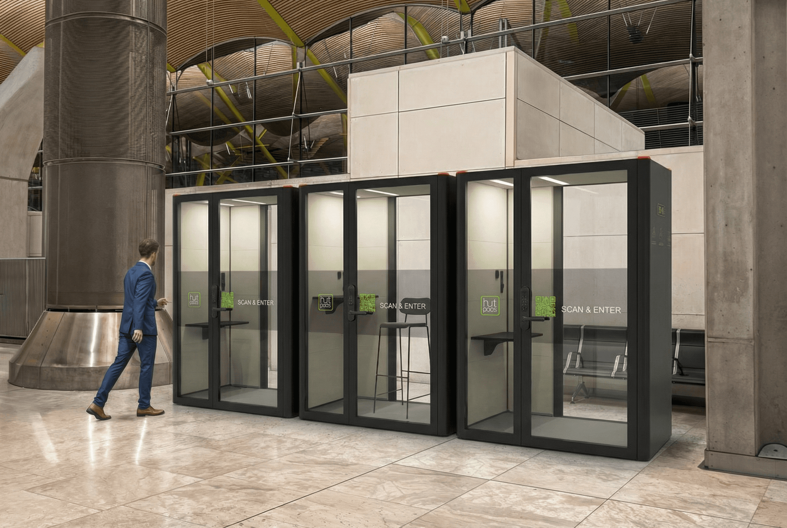 HUT nace para resolver ese problema creando espacios de trabajo privados bajo demanda en lugares de tránsito.