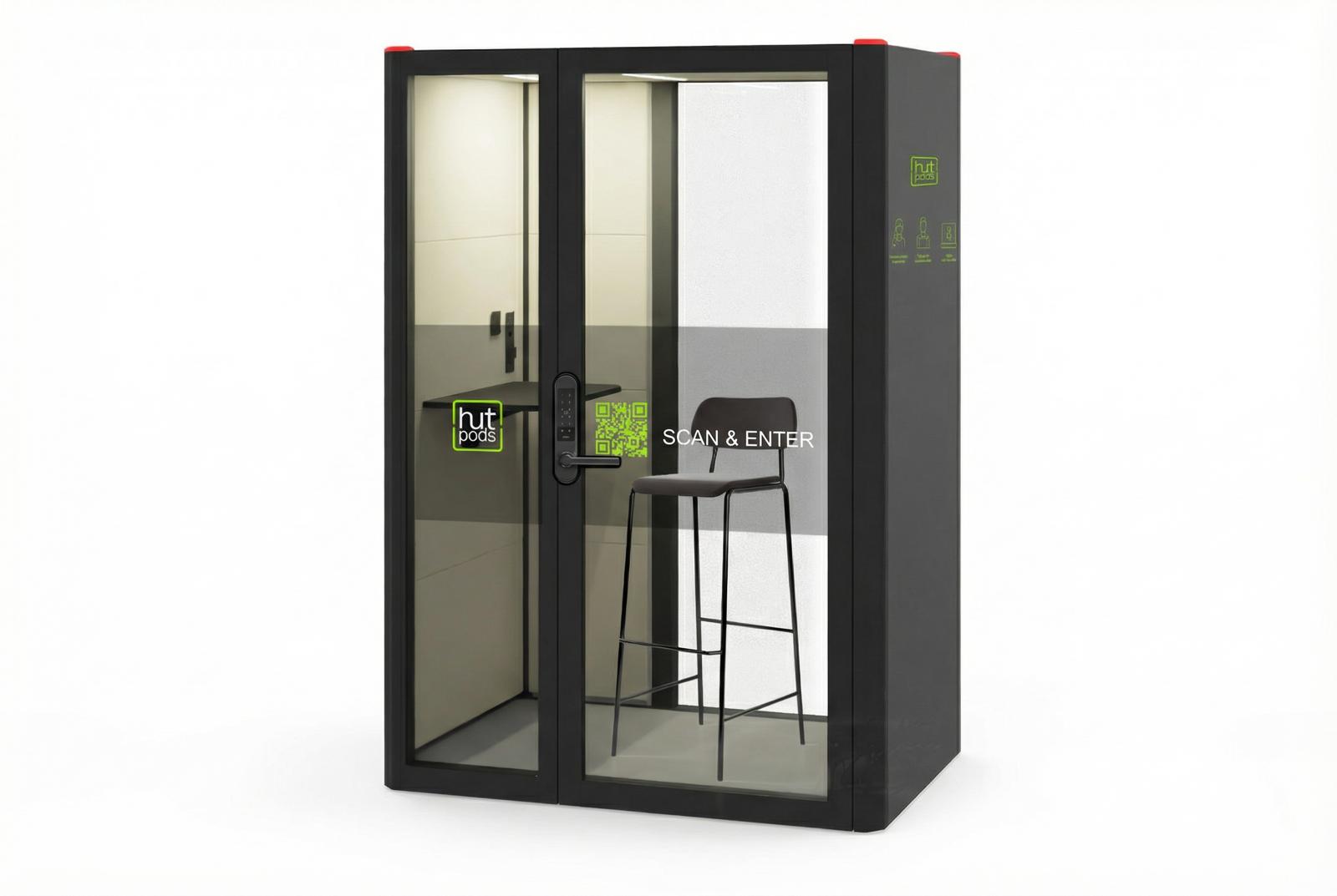 Las soluciones Hutpods se basan en cabinas modulares que permiten crear desde espacios individuales de concentración hasta salas privadas para reuniones o zonas VIP. Cada formato mantiene el mismo estándar de privacidad acústica, ventilación y conectividad.
